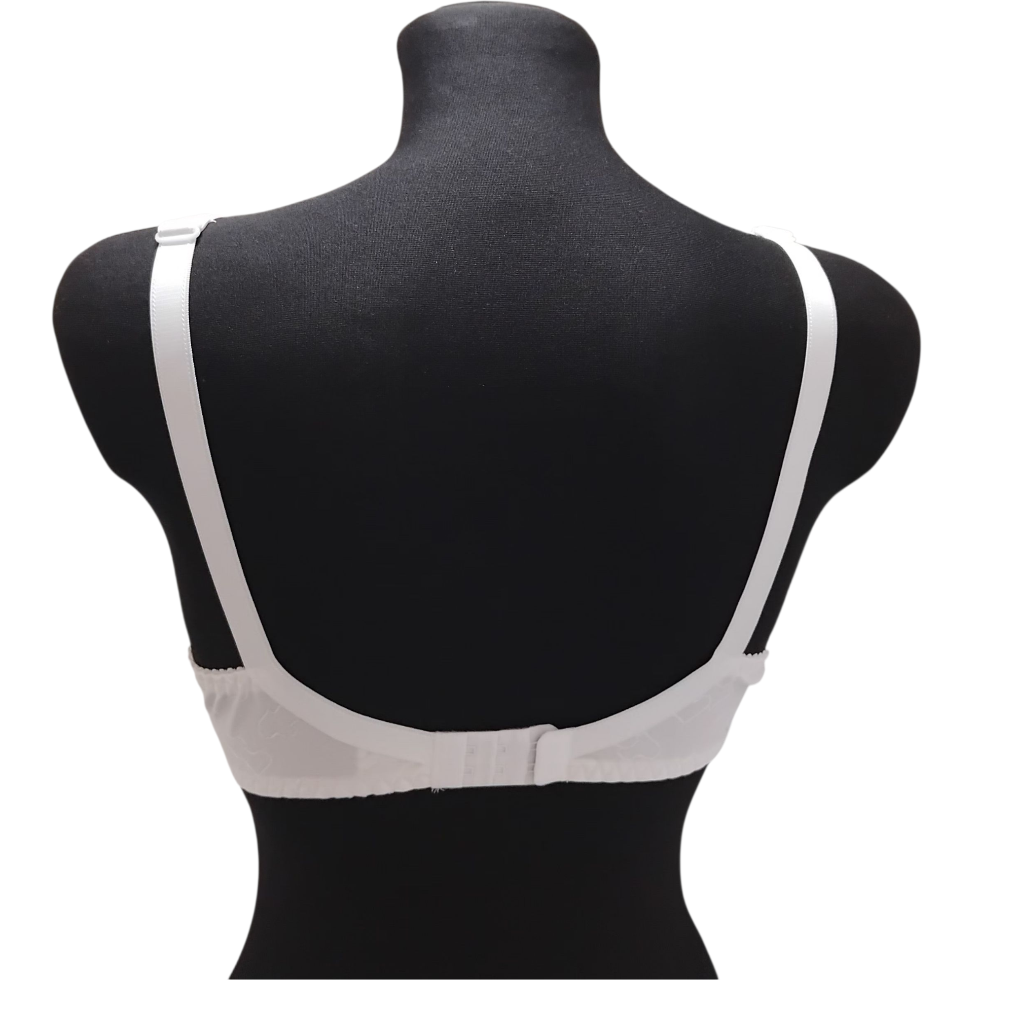 Biały,w delikatne wzorki-serduszka.Odpinane szelki,fiszbiny.Produkt Polski.