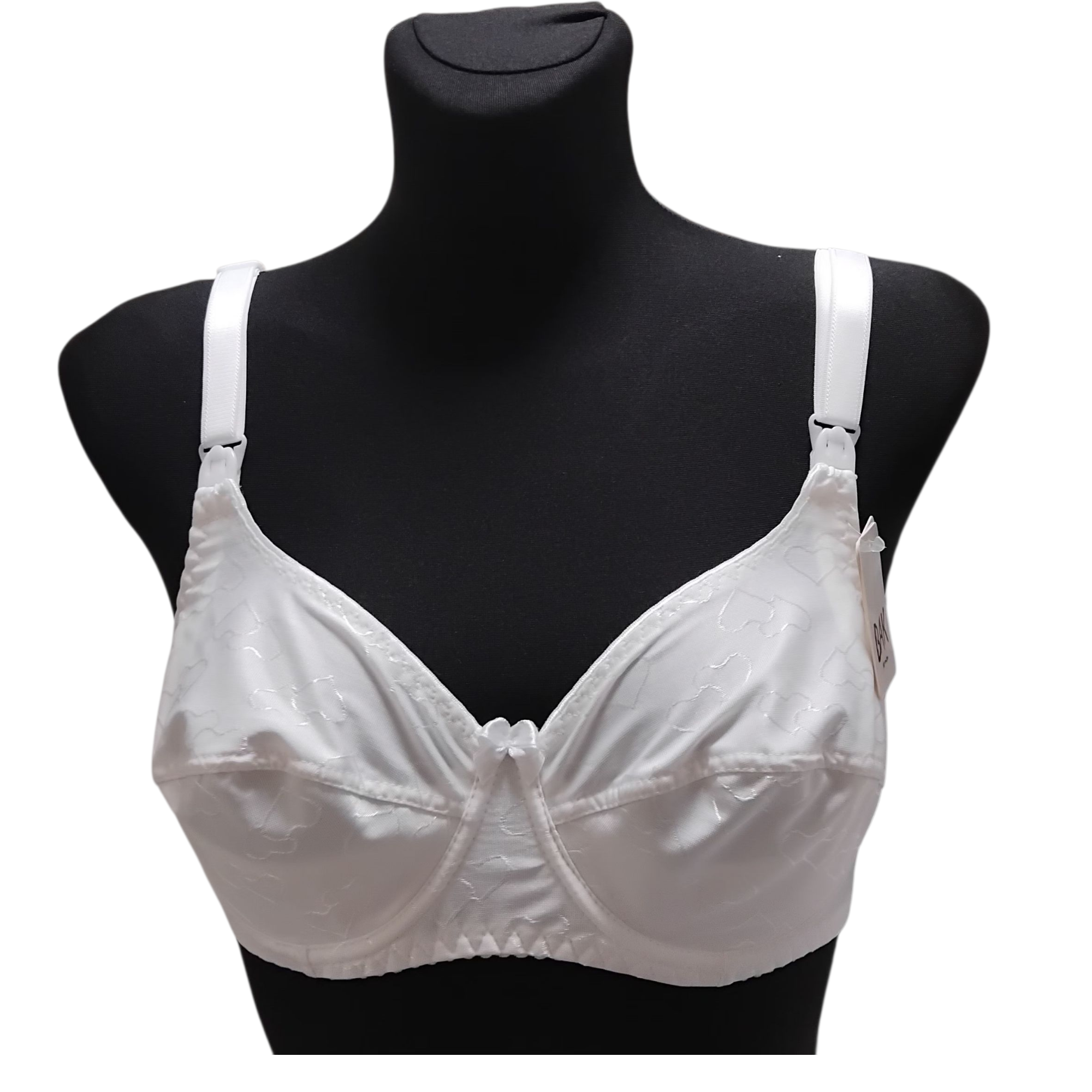 Biały,w delikatne wzorki-serduszka.Odpinane szelki,fiszbiny.Produkt Polski.