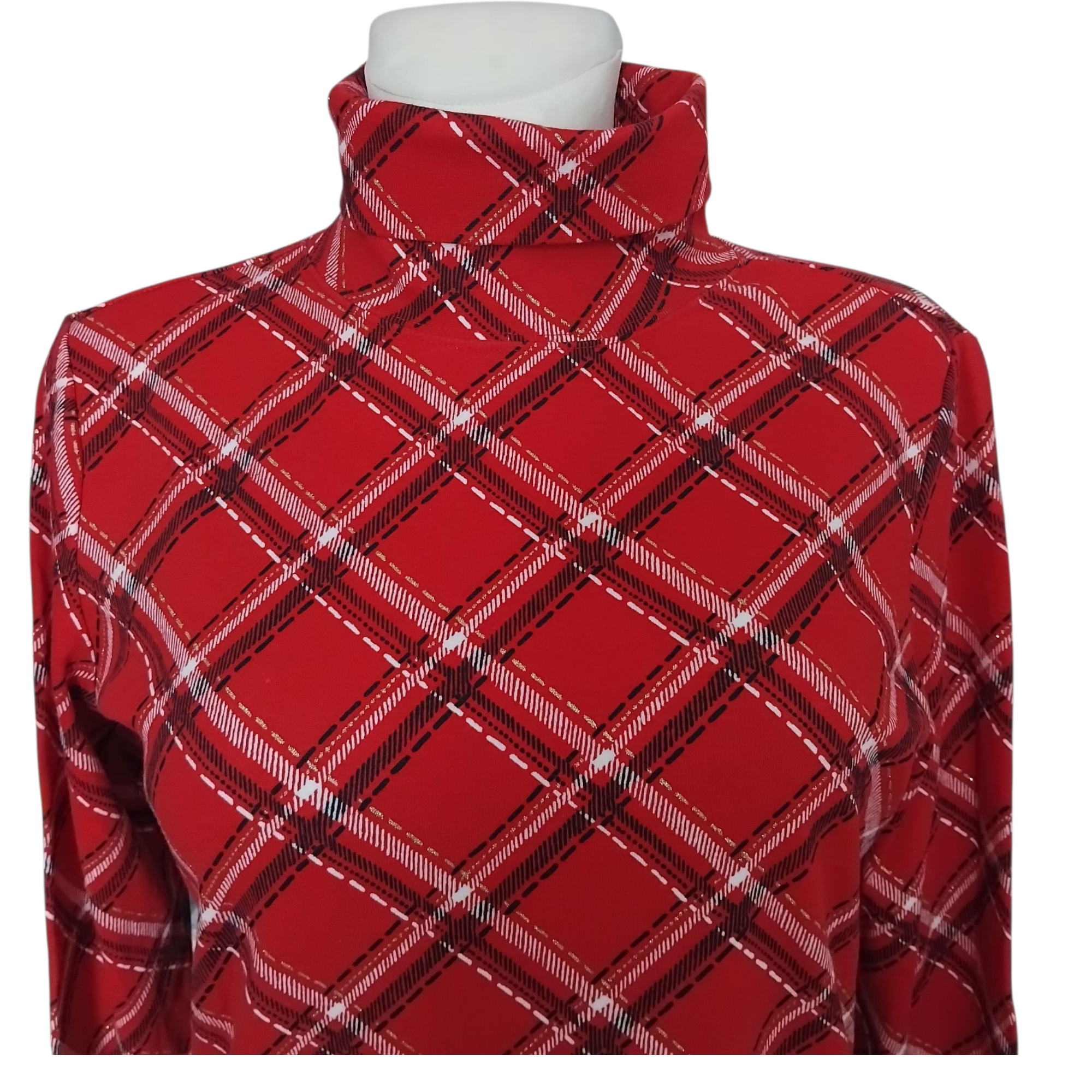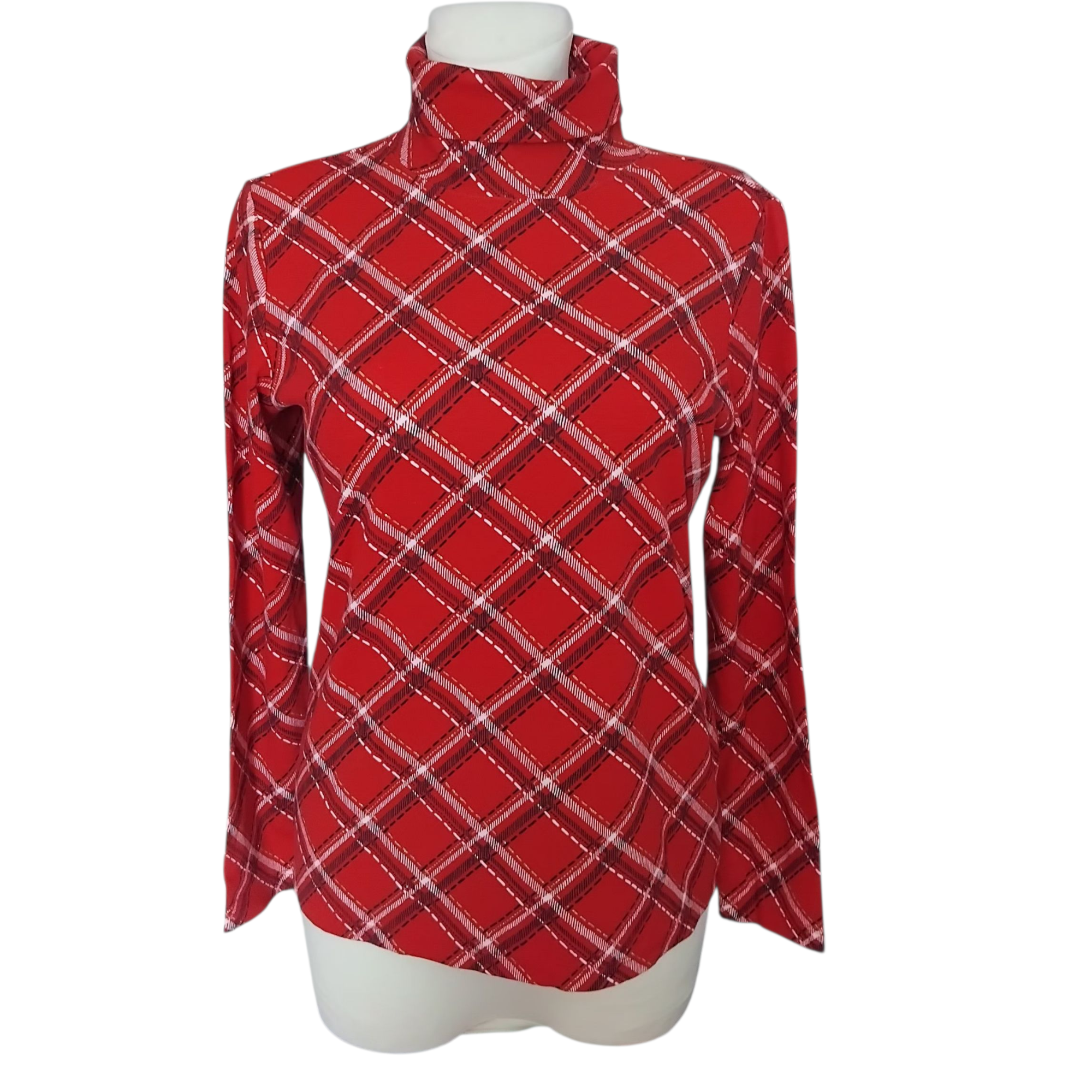 Golf bawełniany damski,rozm.M,czerwony w czarno-biało-złote wzorki.Stan bardzo dobry.