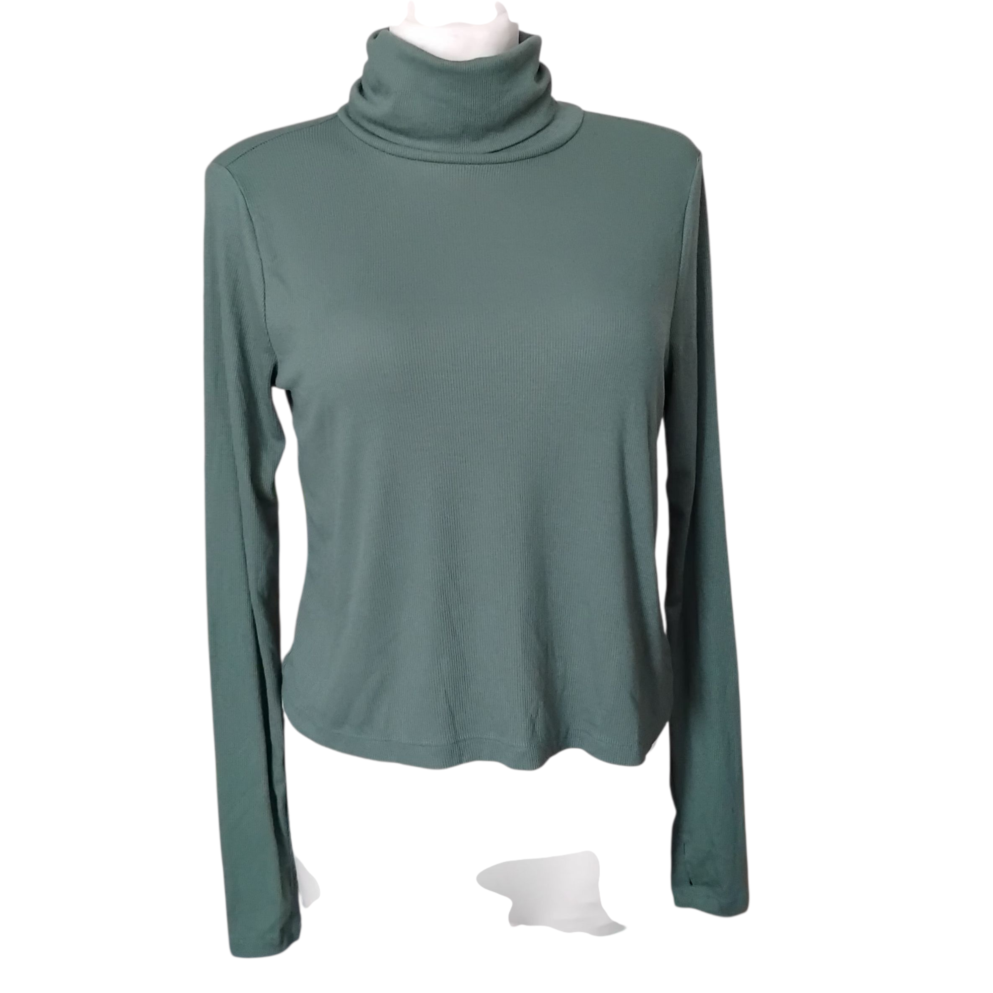 Kolor zielony,materiał prążkowany,elastyczny.Rękaw długi z wycięciem na kciuk.Stan dobry.