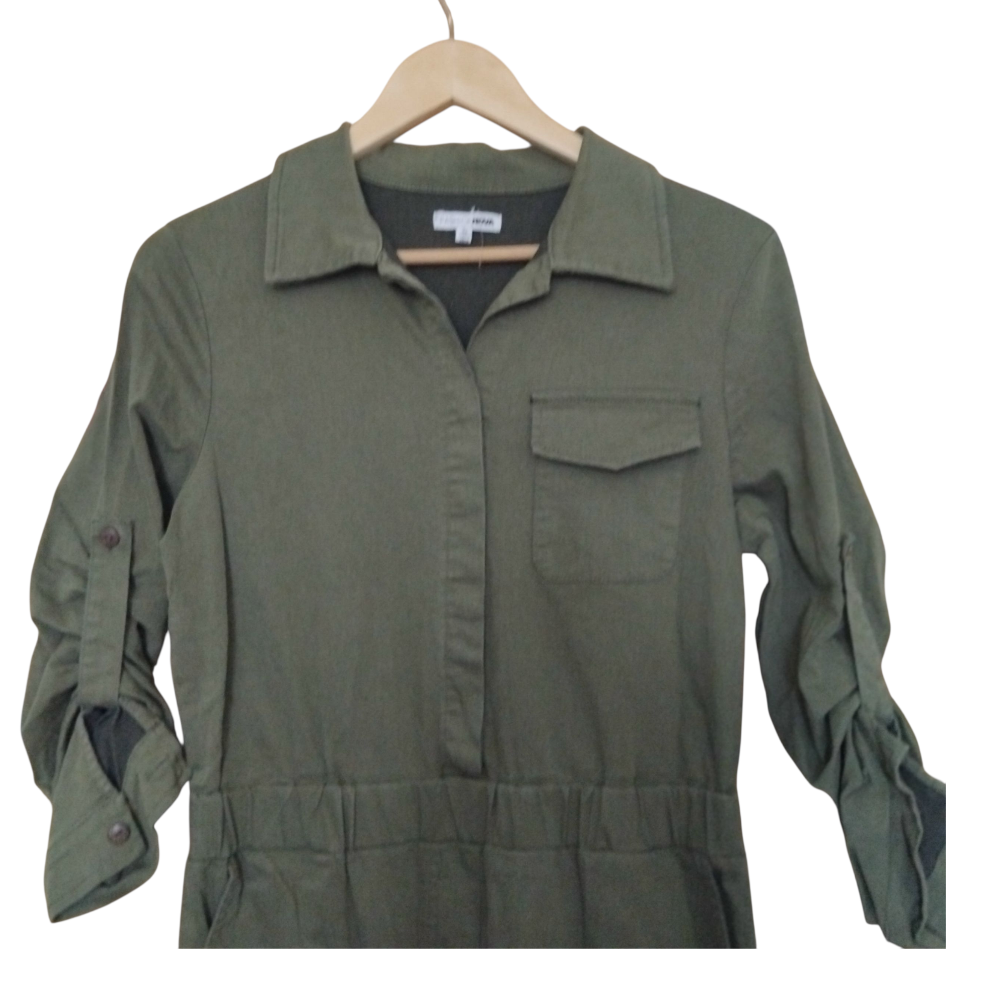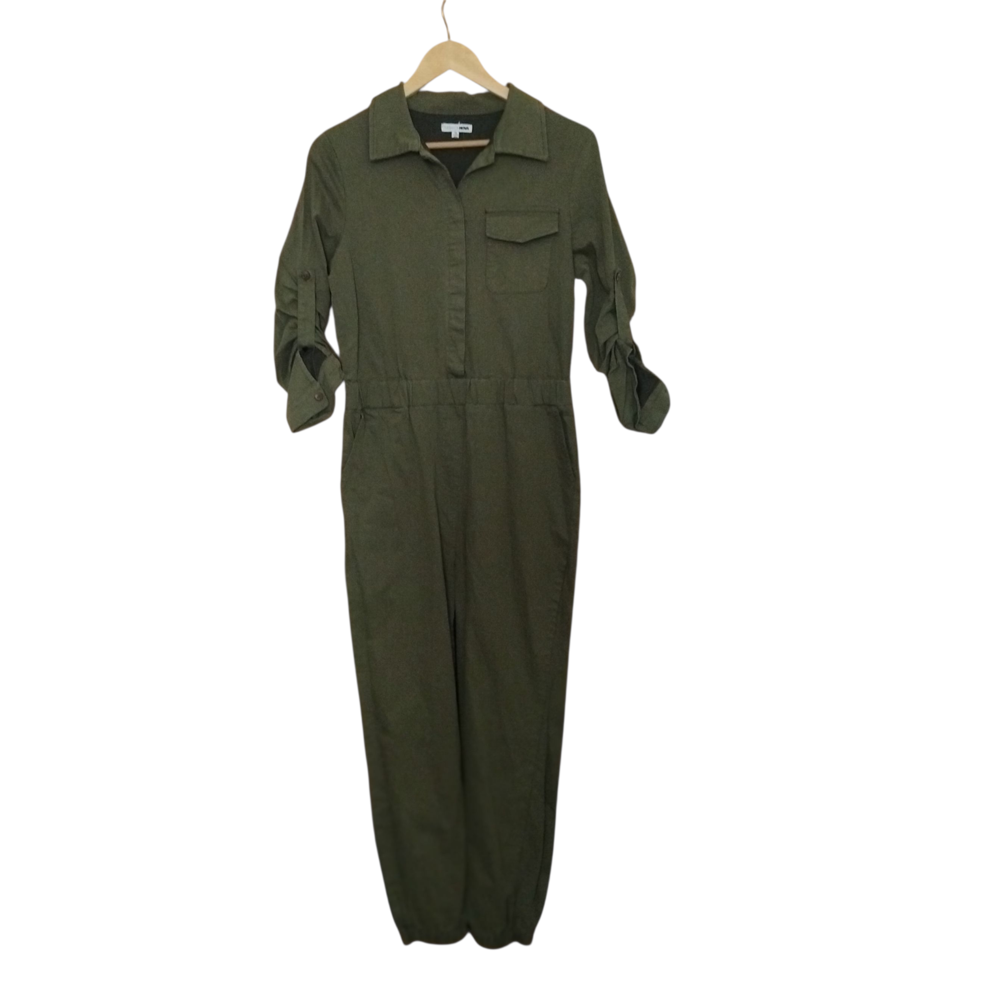 Kombinezon damski rozm.XL,kolor ciemna zieleń,zapinany na guziki,liczne kieszenie,rękaw odwijany,zapinany na guziki.Nogawki zakończone ściągaczami.Stan bardzo dobry.