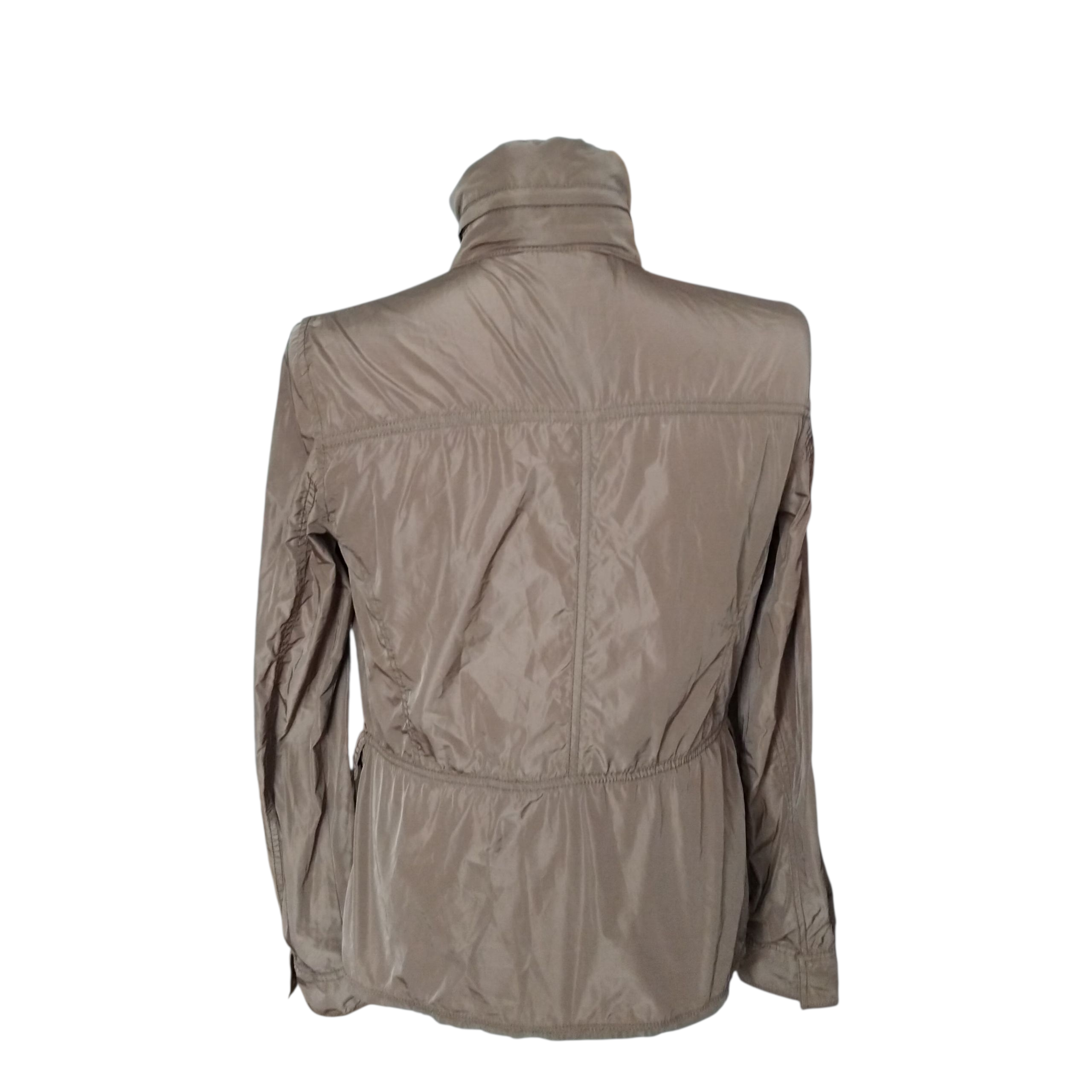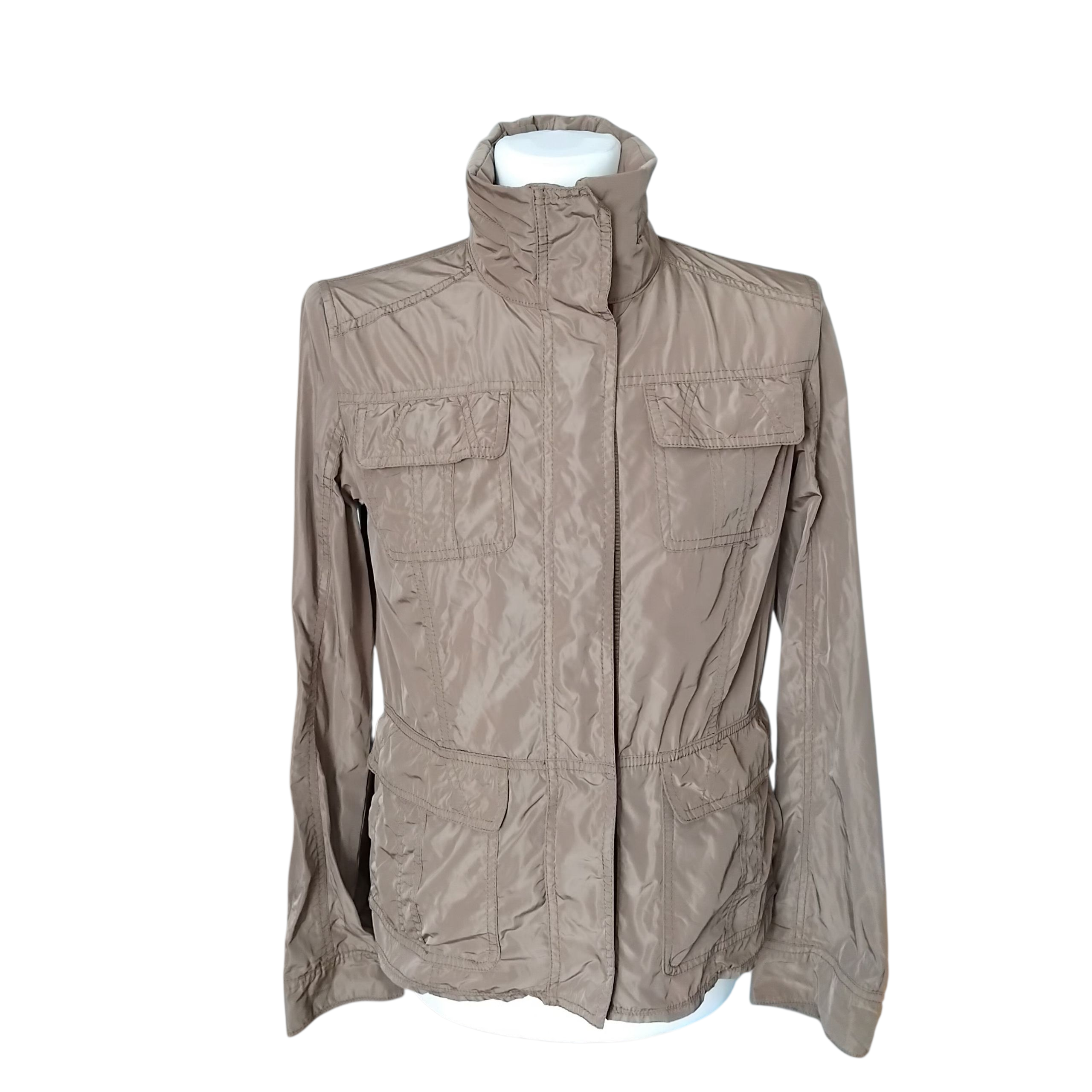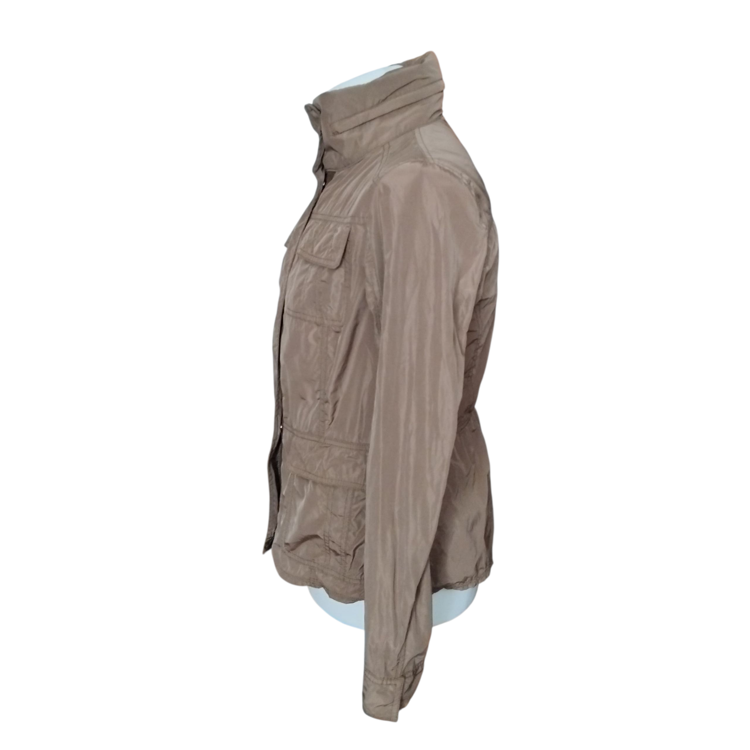Kurtka damska letnia lekka,zapinana na zamek I zatrzaski,wysoki kołnierz,liczne kieszenki.Mankiety rękawów zapinane na zatrzaski.W kołnierzu schowany kaptur.Stan bardzo dobry.
