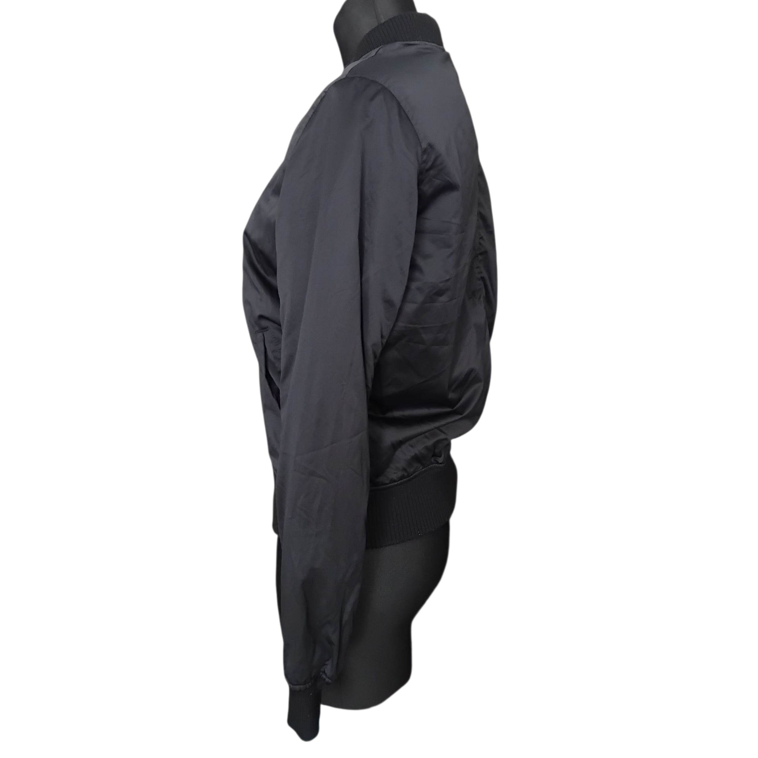 Kurtka damska bomberka,na zamek,ściągacze przy rękawach i na dole,lekkie ślady użytkowania na ściągaczach.Dwie boczne kieszenie. Stan dobry.