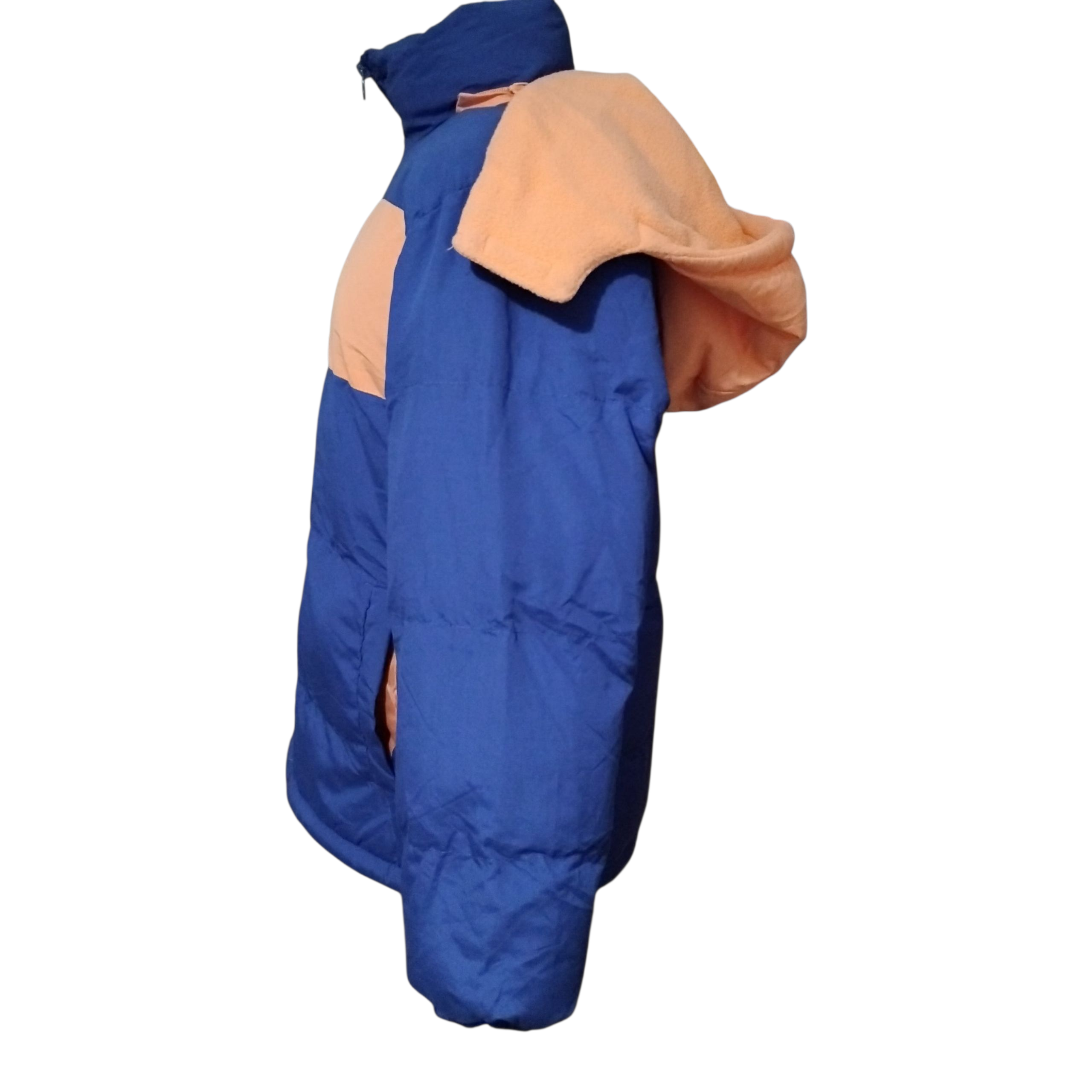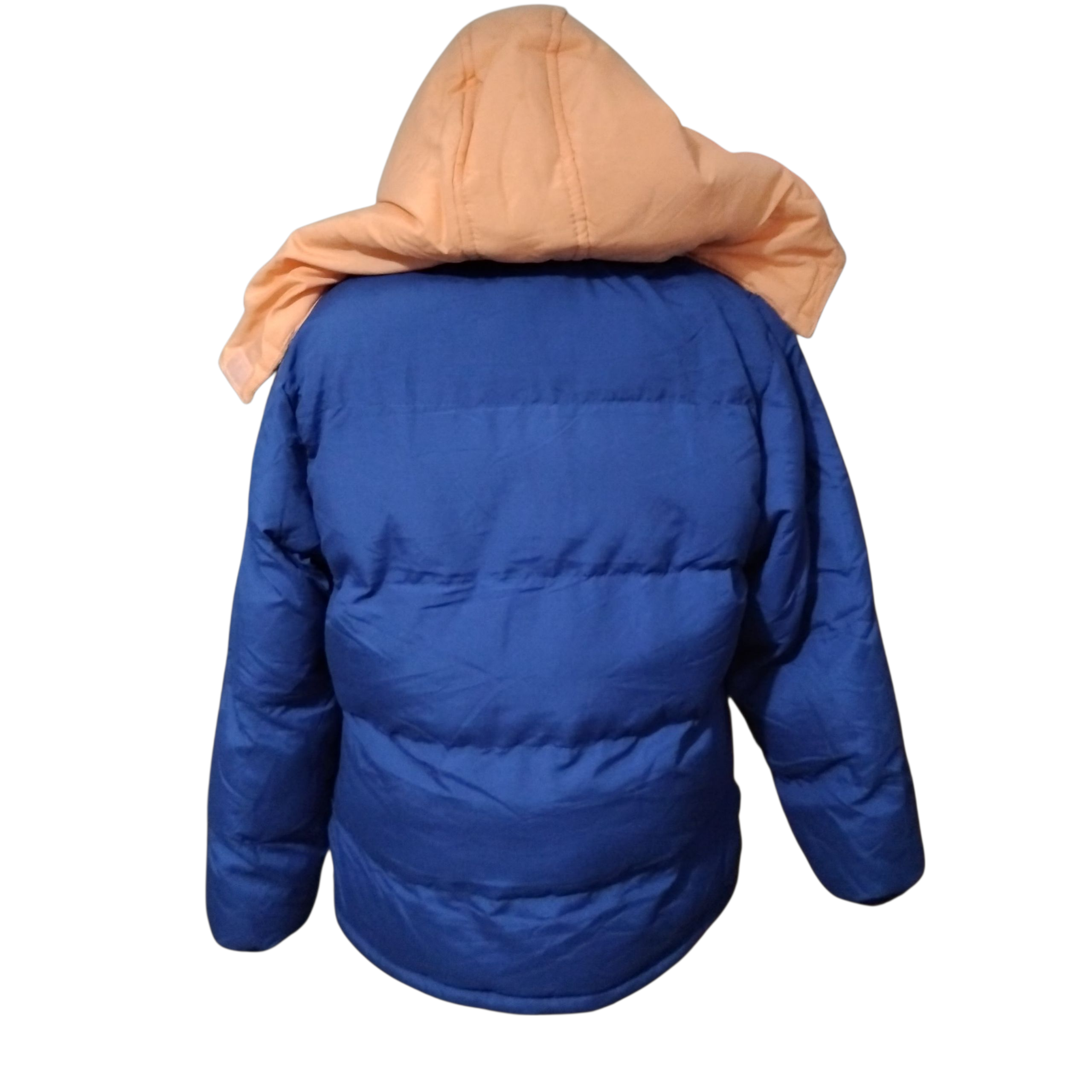 Kurtka dziecięca zimowa z kapturem i wnętrzem,wewnętrzna część i kaptur polarowy. Zapinana na zamek,dwie boczne kieszenie,rękaw ze ściągaczem,kaptur odpinany na zamek,nowa bez metki,lekkie zabrudzenie na kapturze,powystawowe.