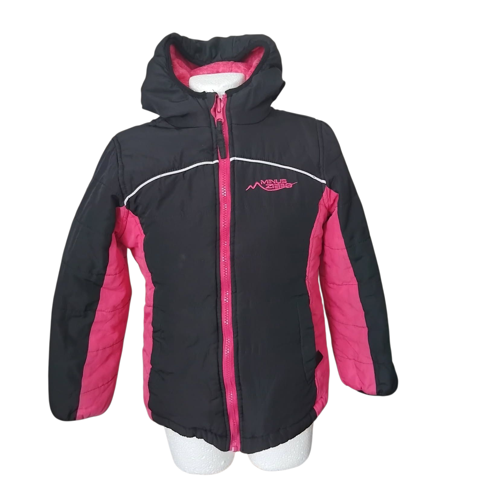 2.Różowa- z małym napisem firmowym na lewej piersi,dwie boczne kieszenie, obszycia kaptura,rękawów i kieszeni-czarne.