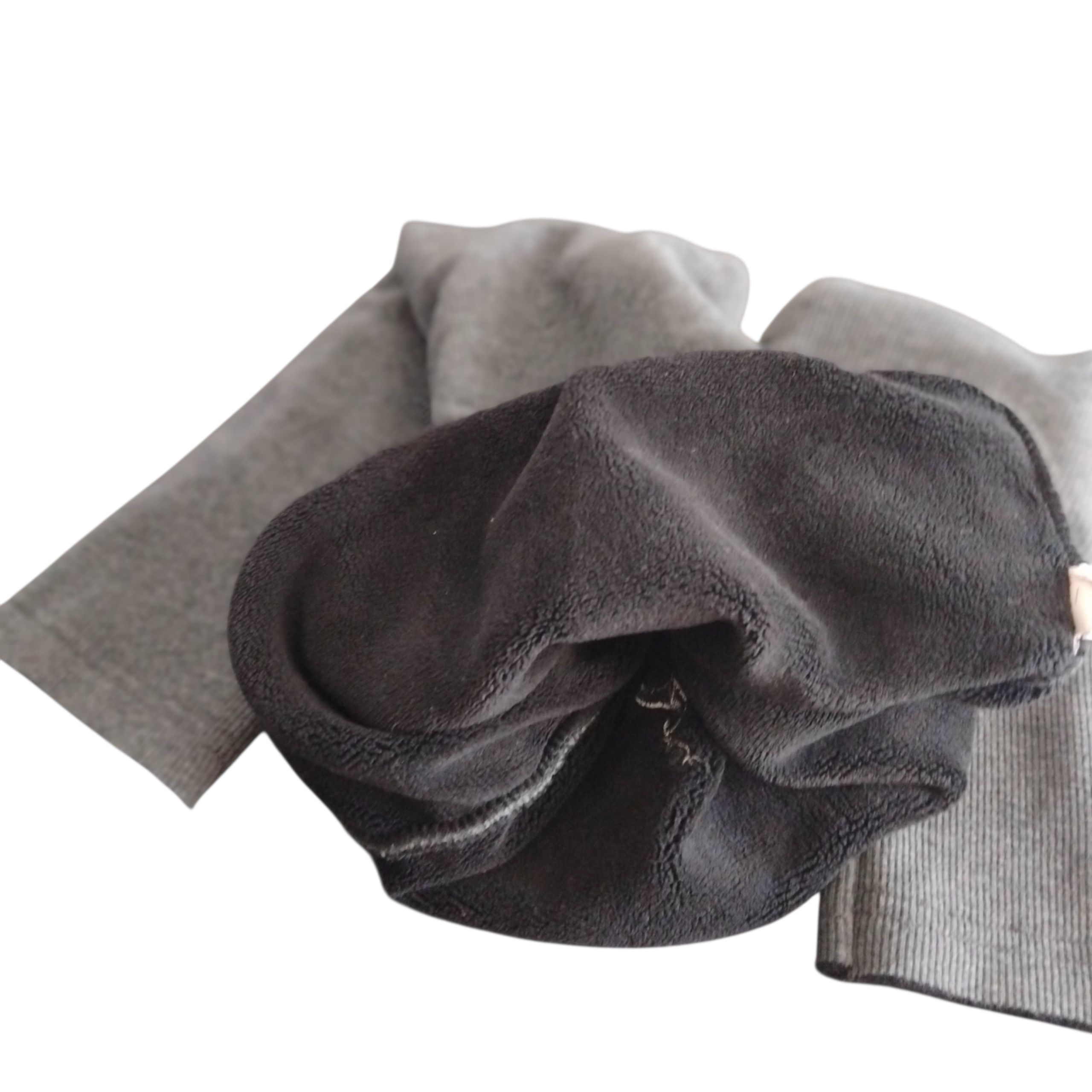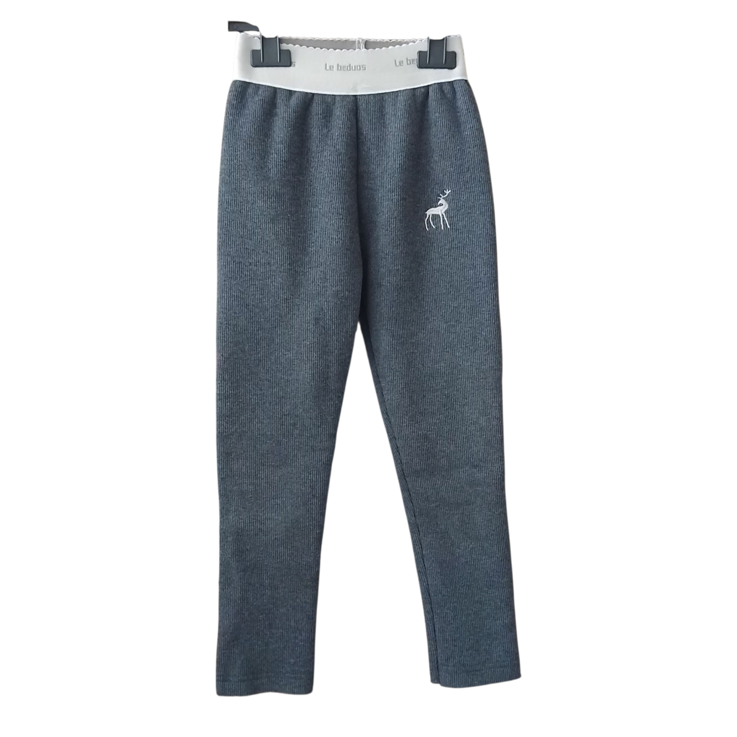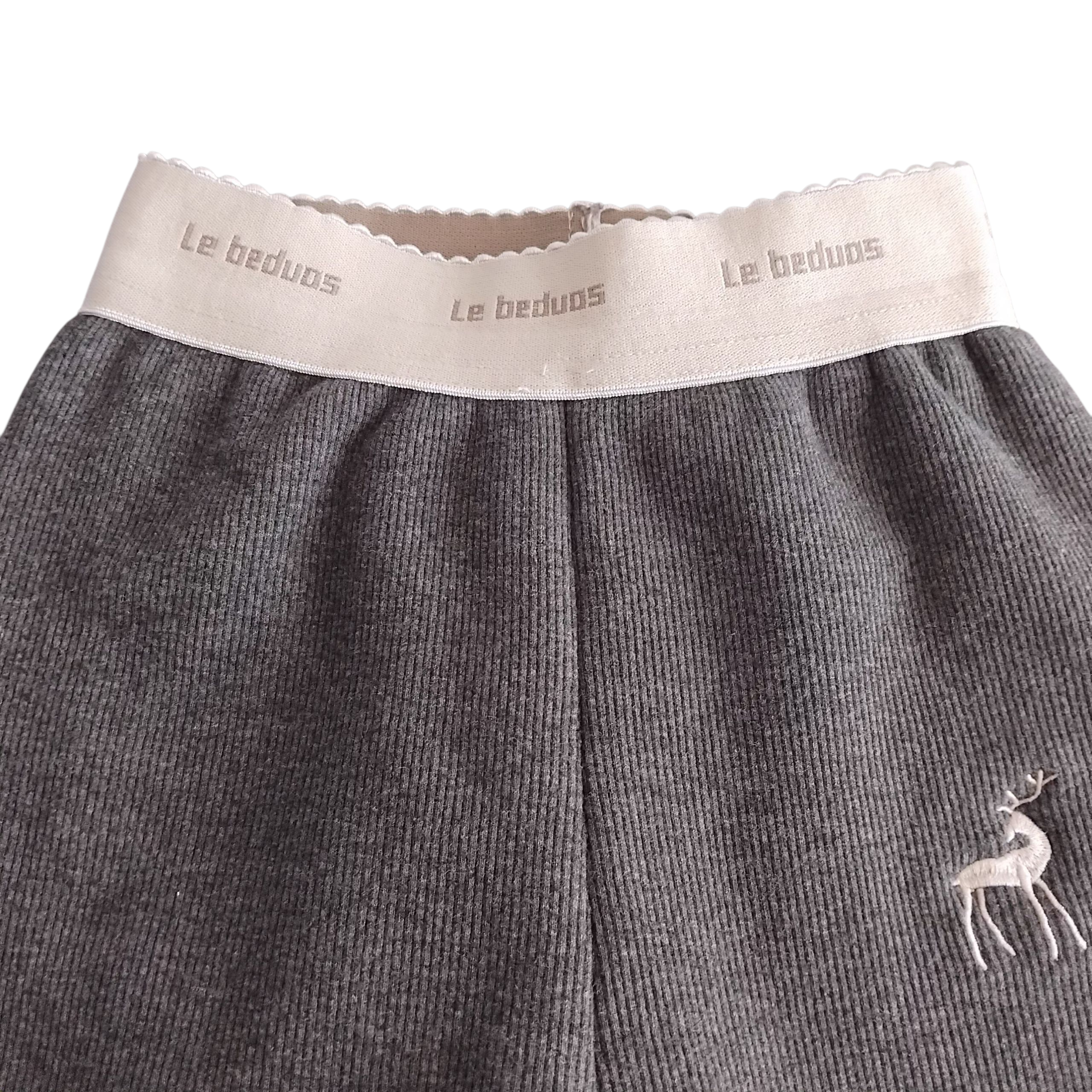 Opis - Szare z mała aplikacją z przodu, prążkowany materiał, na szerokiej gumie w pasie. Stan bardzo dobry.