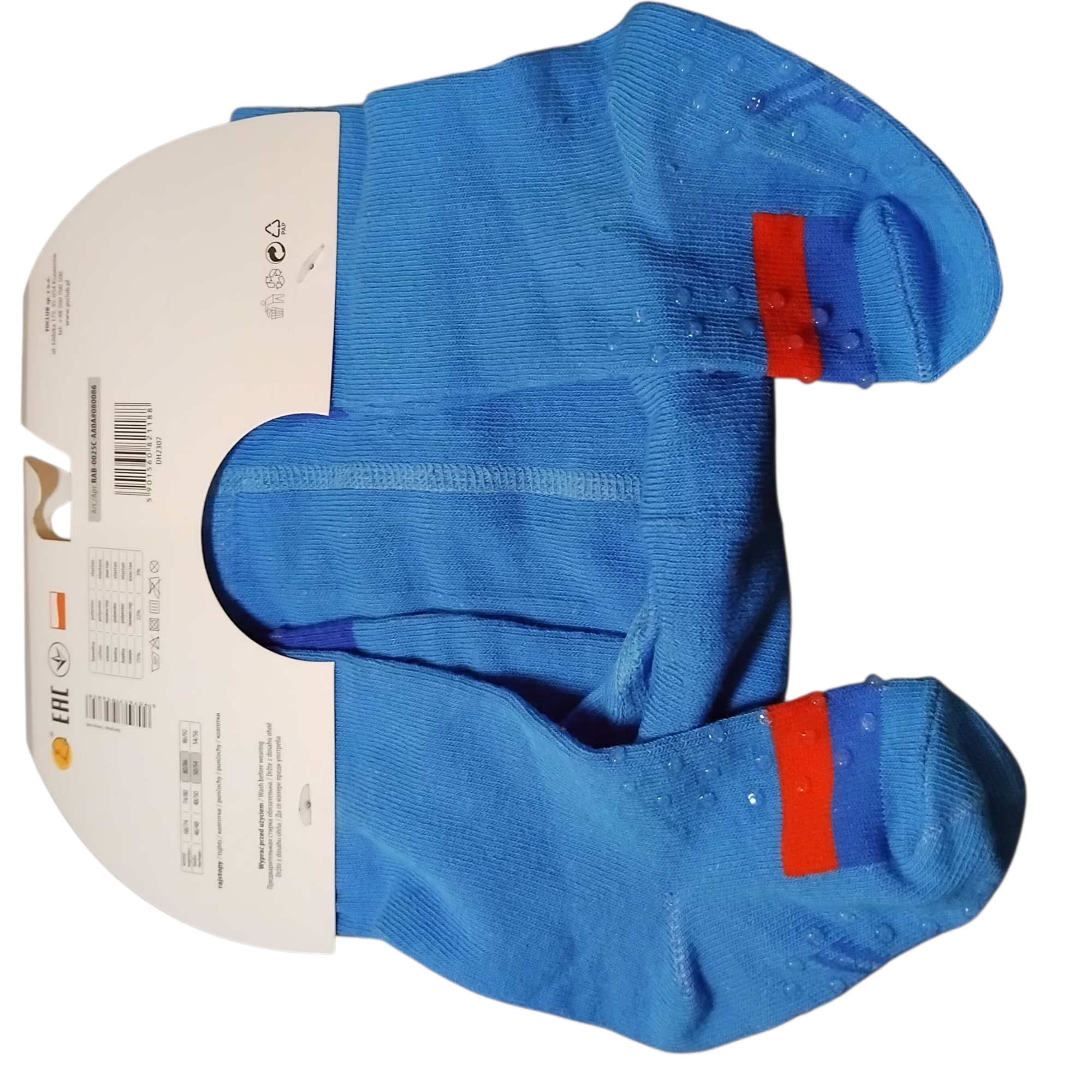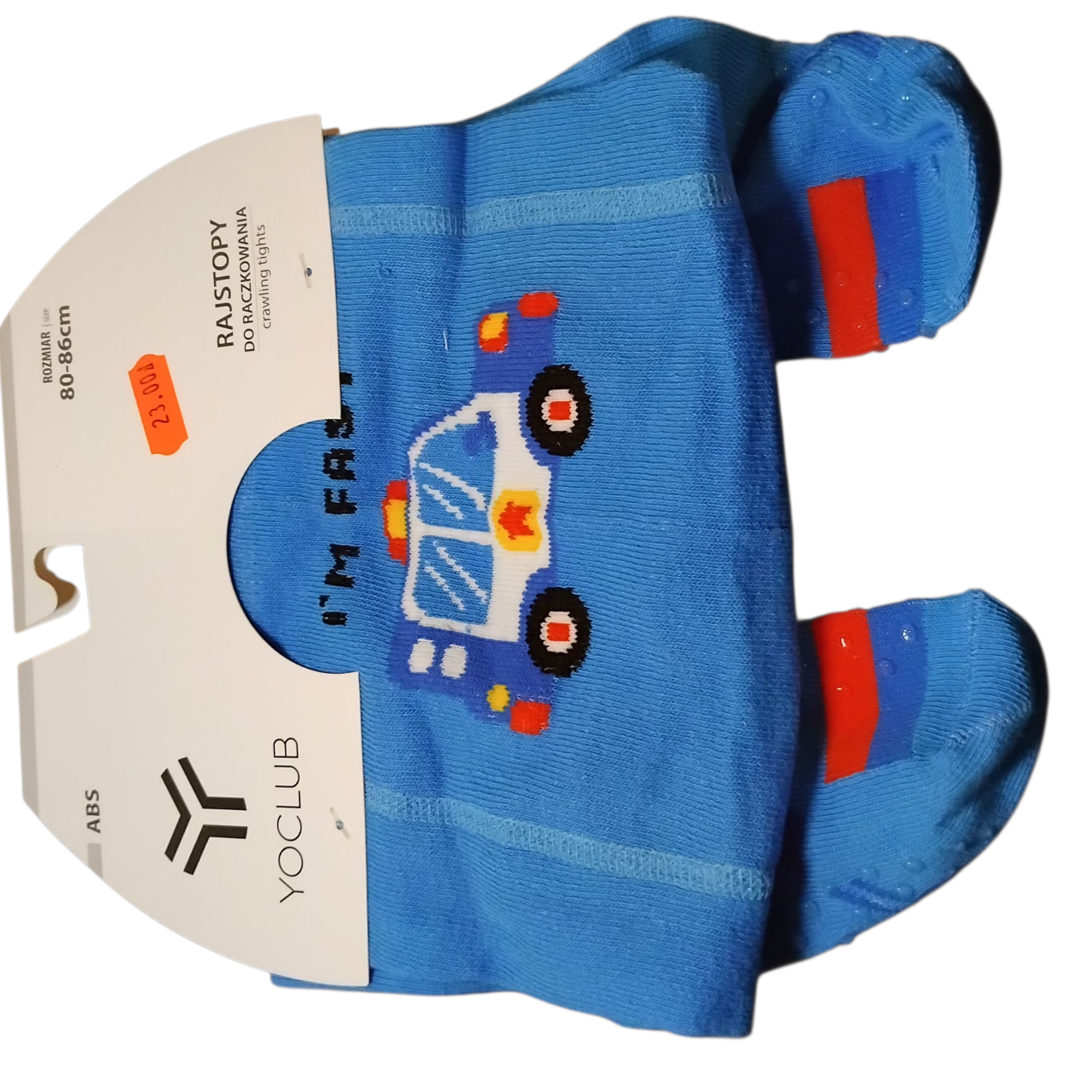 Niebieskie z kolorową aplikacją,podgumowane na kolanach i stopach.