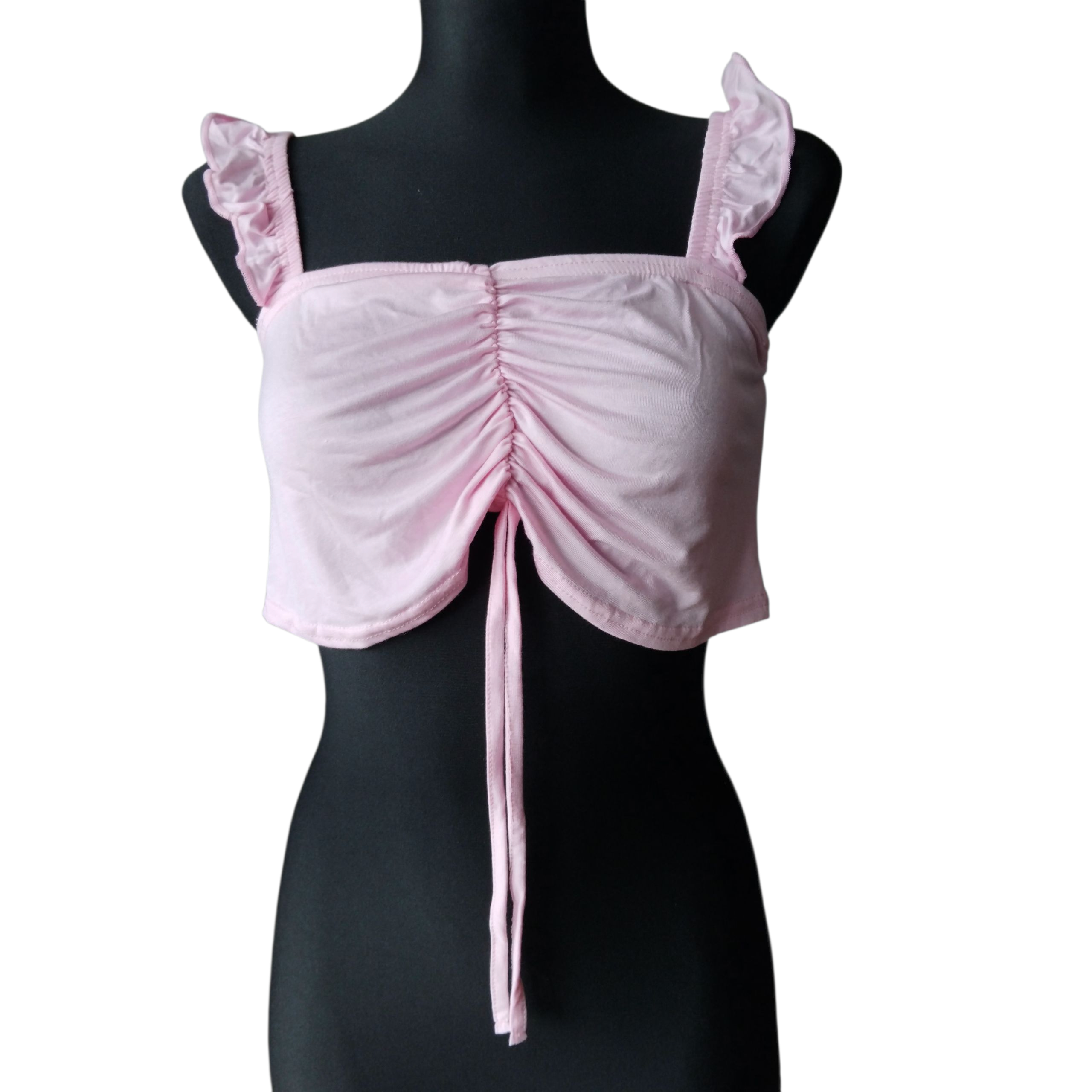 Top damski(2-pak),marszczony i wiązany w biuście,falbany na ramiączkach.